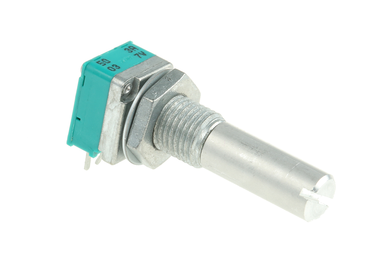 This is Alps Rotary Carbon Film Potentiometer with a 6 mm Dia. Shaft 50kΩ ±20% 0.05W Logarithmic manufactured by Alps Alpine. The manufacturer part number is RK0971110702. The diameter of the shaft is 6 mm. The product is available in panel mount, through hole configuration. It includes a/an rotary type potentiometer . The product rk097, is a highly preferred choice for users. Moreover, it has pin terminal style. Consist of 1 turns. It includes a/an logarithmic electrical taper . Feature 0.05w of power rating. The product offers a maximum resistance up to 50kω. It features ±20% of tolerance value.