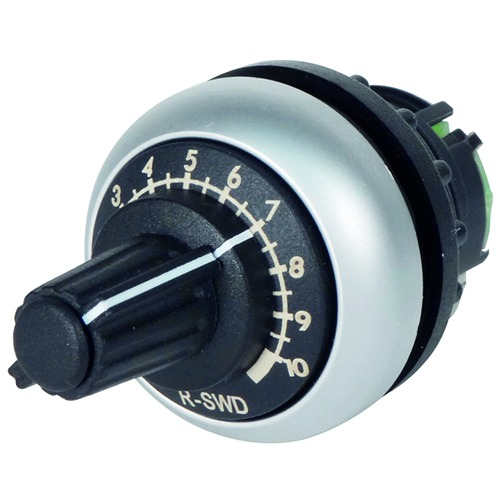 This is Rotary Potentiometer 1-Gang Panel Mount manufactured by Eaton. The manufacturer part number is 179292 M22-R-SWD. It includes a/an rotary type potentiometer . It comprises 1 gangs. The product is available in panel mount configuration. Consist of 1 turns.