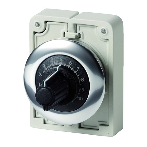 This is Rotary Potentiometer 1-Gang Panel Mount manufactured by Eaton. The manufacturer part number is 187036 M30C-FR22K. Feature 0.5w of power rating. It includes a/an rotary type potentiometer . It comprises 1 gangs. The product is available in panel mount configuration. Consist of 1 turns.