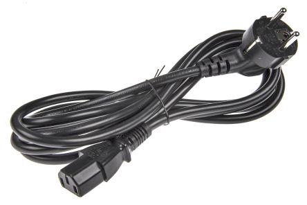 This is 2.5m power cord C13 to Schuko (CEE 7/4) 10 A 250 V manufactured by RS Pro. The manufacturer part number is 731-6169. The product has a current rating of 10 a. The product complies with all safety standards, such as saa. Moreover, the product has a nominal 250 v voltage rating. While the connector B is cee 7/4, schuko. Its main plug is of cee 7/7 german schuko / french type . The connector A is c13, iec connector. The sheath has an adorable black colour. Its accurate length is 2.5m. Its main socket is of iec 60320 c13 . Whereas the outer sheath is manufactured from pvc material.