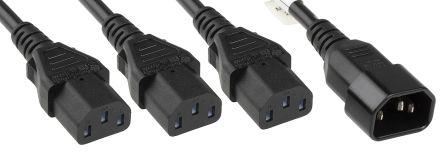 This is 2.5m Extension Lead C13 x3 to C14 (IEC) 10 A 250 V manufactured by RS Pro. The manufacturer part number is 731-6208. The product has a current rating of 10 a. Whereas the outer sheath is manufactured from pvc material. Moreover, the product has a nominal 250 v voltage rating. While the connector B is c14, iec. Its main plug is of iec 60320 c14 type . The connector A is c13 x3, iec connector. The sheath has an adorable black colour. Its accurate length is 2.5m. Its main socket is of iec 60320 c13 .