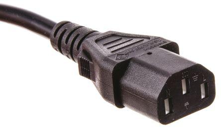 This is 3m power cord C13 to UK Plug (BS 1363) 10 A 250 V manufactured by RS Pro. The manufacturer part number is 262-1160. It includes a/an bs 1363 type connector B . The product has a current rating of 10 a. The product complies with all safety standards, such as asta. Moreover, the product has a nominal 250 v voltage rating. While the connector B is uk plug. The connector A is c13 connector. Connector A is a female allowing user-desired applications. The sheath has an adorable black colour. Its connector A is of iec type . Its accurate length is 3m. It has a straight connector A angle . While connector B has a male gender. Whereas the outer sheath is manufactured from pvc material. It has a right angle connector of B angle .