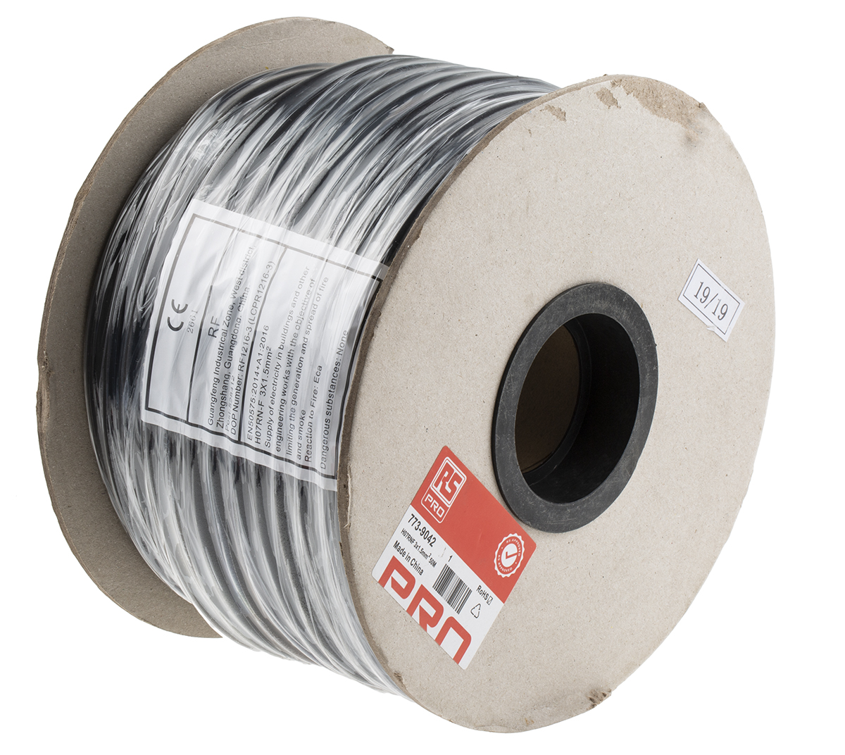 This is 3 Core 1.5 mm² Mains Power Cable Black CPE Sheath 50m 18 A 450 V 750 V H07RN-F manufactured by RS Pro. The manufacturer part number is 773-9042. Features 15 awg - American Wire Gauge. The product has a current rating of 18 a. The conductor has 13.3 ω/km resistance. The product consists of 3 cores. Its outer diameter is 10.1mm. Additionally, it contains 30 strands. The product complies with all safety standards, such as vde 0285-525-2-21. The core strands are 30/0.24 mm. It has a stranded type conductor strand . It has a maximum operating temperature of +60°c. The product has 1.5 mm² cross section area. Moreover, the product has a nominal 450 v, 750 v voltage rating. The product has a flame retardant fire behaviour. Its accurate length is 50m. The sheath is constructed from durable and adorable cpe material. The conductor is made from copper material. The strand size includes 0.24 mm. The sheath has an adorable black colour. It has a robust epr insulation material. Whereas, the minimum operating temperature of the product is -25°c. It has h07rn-f European harmonized code .