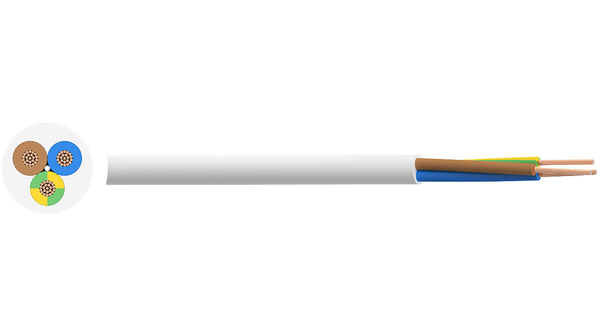 This is Mains Cable PVC 3x1.5mm² 500V WHT 50M manufactured by RND. The manufacturer part number is RND 475-00004.