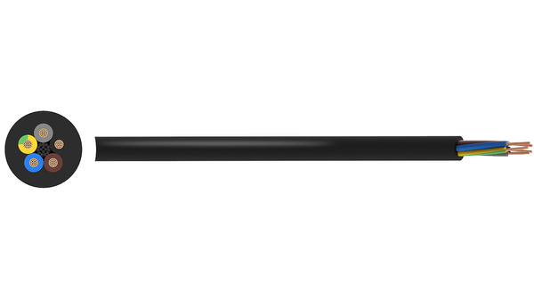 This is Mains Cable PVC 5x2.5mm² 500V BLK 50M manufactured by RND. The manufacturer part number is RND 475-00051.