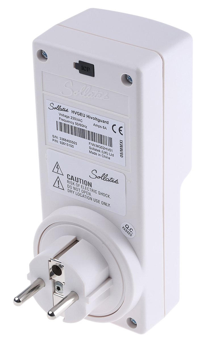 This is Voltage Switcher 230V ac 5A Over Voltage 1380VA Plug in manufactured by Sollatek. The manufacturer part number is 92615100. The product has +55°c maximum temperature. The product is available in plug in configuration. It carries 5a output current. While its minimum temperature is 0°c. Its electrical phase configuration includes 1. It has a standard over voltage type protection . It carries 75hz of maximum operating frequency. Its input voltage is 230v ac. Its output power is 1380va. Features a 230v ac output voltage. It has a minimum 45hz operating frequency . It has a voltage protection mode of differential . It has a/an l n e wiring configuration . The product complies with all safety standards, such as iso9001:2008.
