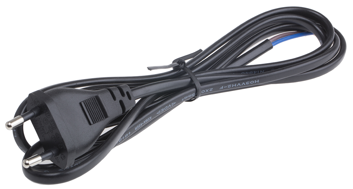 This is 1.8m power cord Unterminated to Europlug (CEE 7/7) 2.5 A 250 V manufactured by RS Pro. The manufacturer part number is 531-116. The product has a current rating of 2.5 a. Moreover, the product has a nominal 250 v voltage rating. The sheath has an adorable black colour. Its accurate length is 1.8m. Whereas the outer sheath is manufactured from pvc material.