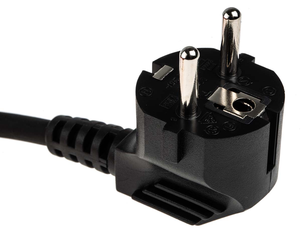 This is 2m Kettle Lead C15 to Schuko (CEE 7/7) 16 A 250 V manufactured by RS Pro. The manufacturer part number is 909-2174. In addition, its connector 2 orientation is right angle . The product has a current rating of 10 a. Moreover, the product has a nominal 250 v voltage rating. The connector 1 has a straight orientation. This connector 1 is a female. The sheath has an adorable black colour. Its accurate length is 2m. Whereas the outer sheath is manufactured from pvc material. While the Connector 2 is cee 7/7. Connector 2 is a male connector. Connector 1 is iec c15.