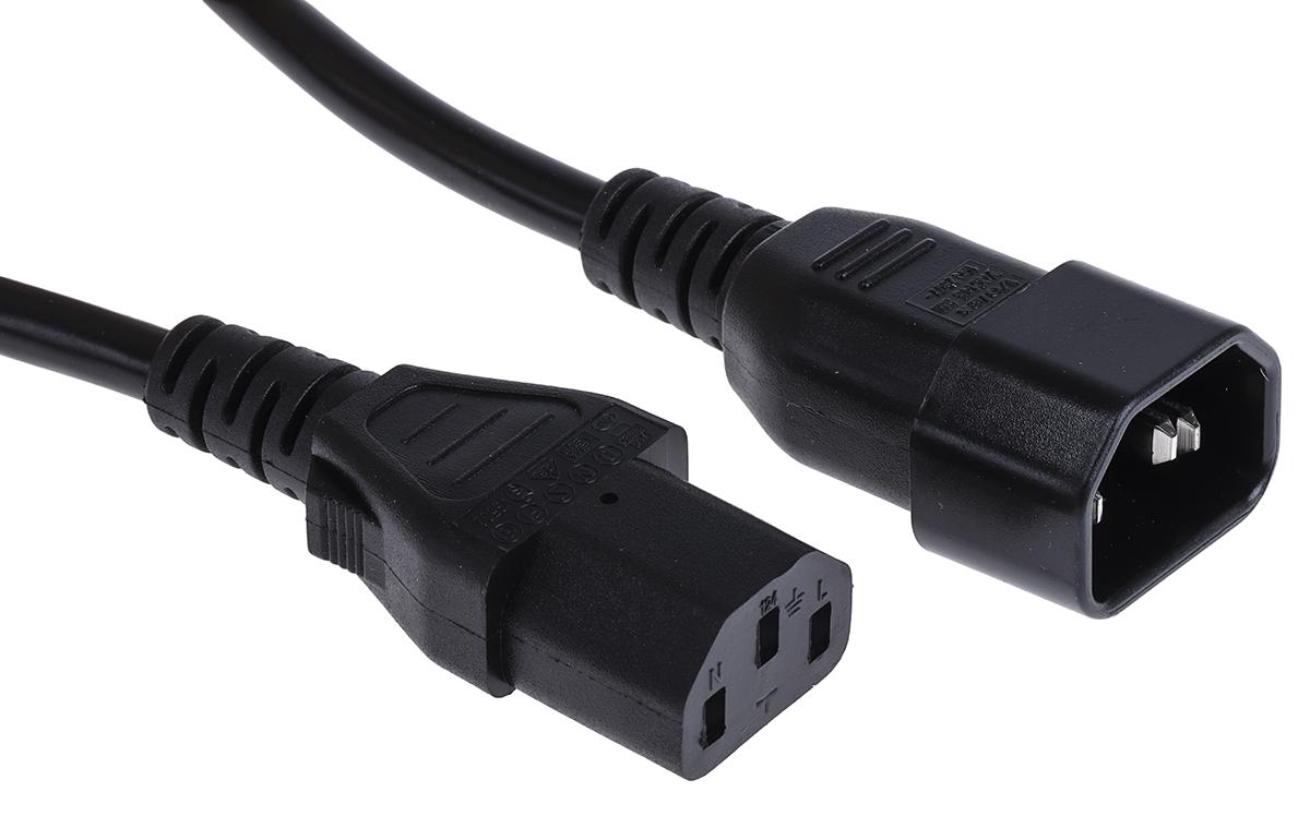 This is 2m power cord C13 to C14 (IEC) 10 A 250 V manufactured by RS Pro. The manufacturer part number is 487-277. In addition, its connector 2 orientation is straight . The product has a current rating of 10 a. Moreover, the product has a nominal 250 v voltage rating. The connector 1 has a straight orientation. The product has a flame retardant fire behaviour. This connector 1 is a female. The sheath has an adorable black colour. Its accurate length is 2m. The product has 7mm² cross section area. Whereas the outer sheath is manufactured from pvc material. While the Connector 2 is iec c14. Connector 2 is a male connector. Connector 1 is iec c13.
