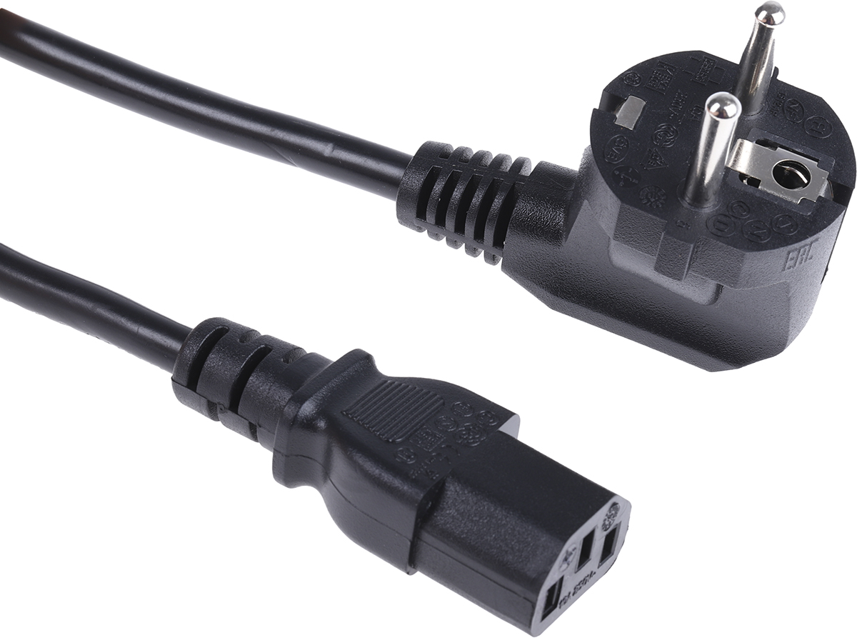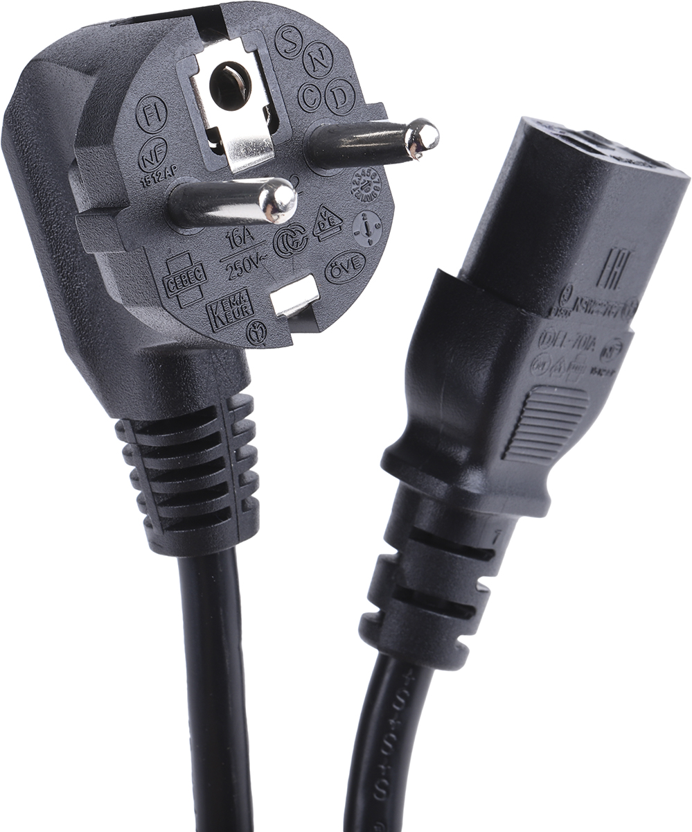 This is 2.5m power cord C13 to Schuko Plug (CEE 7/4) 250 V manufactured by RS Pro. The manufacturer part number is 731-6191. In addition, its connector 2 orientation is right angle . The product has a current rating of (bs 4491) 10 a, (iec 60884-1 cee7) 16 a. The product complies with all safety standards, such as saa. Moreover, the product has a nominal 250 v voltage rating. The connector 1 has a straight orientation. This connector 1 is a female. The sheath has an adorable black colour. Its accurate length is 2.5m. The product has 1mm² cross section area. Whereas the outer sheath is manufactured from pvc material. While the Connector 2 is type f german schuko plug. Connector 2 is a male connector. Connector 1 is iec c13.