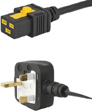 This is C19 power cord Socket Plug manufactured by Schurter. The manufacturer part number is 6051.2048. The product has a current rating of 13 a. Moreover, the product has a nominal 125 (csa) v ac, 125 (ul) v ac, 250 (iec) v ac voltage rating. This connector 1 is a female. The sheath has an adorable black colour. Its accurate length is 2m. While the Connector 2 is type g uk plug. Connector 2 is a male connector. Connector 1 is iec c19.