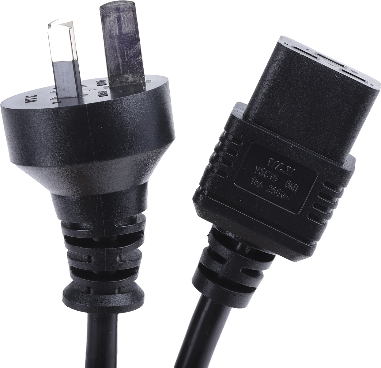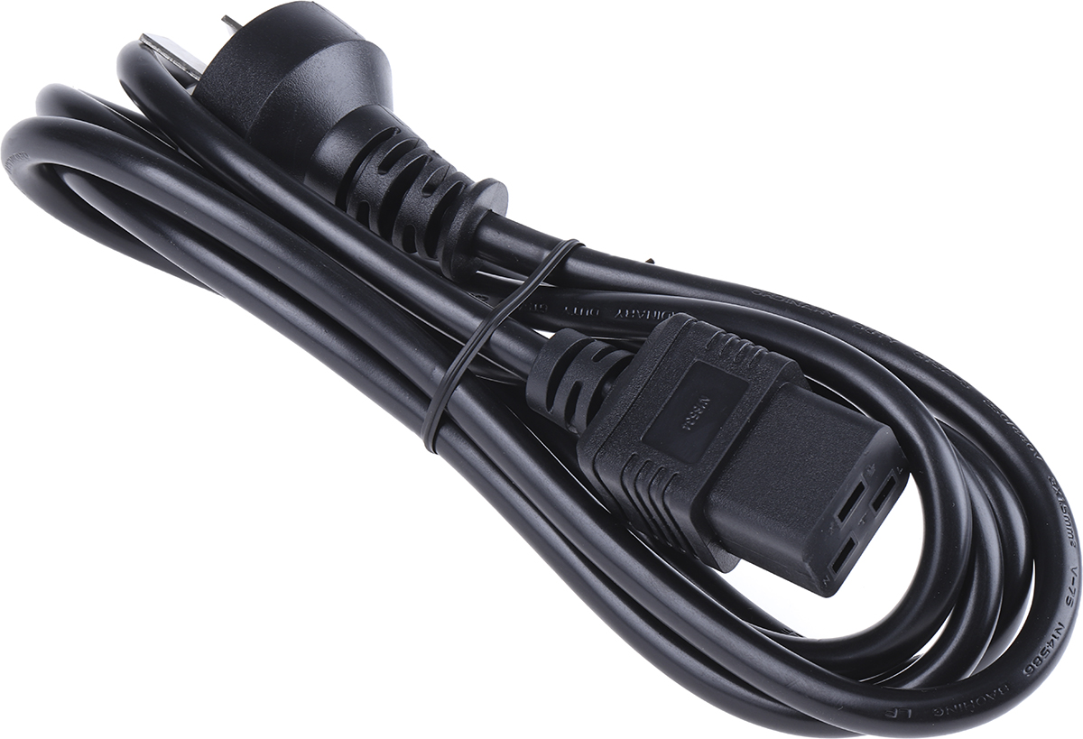 This is 2m power cord C19 to Australian Plug (AS3112) 15 A 250 V manufactured by RS Pro. The manufacturer part number is 909-2200. The product has a current rating of 15 a. Moreover, the product has a nominal 250 v voltage rating. This connector 1 is a female. The sheath has an adorable black colour. Its accurate length is 2m. Whereas the outer sheath is manufactured from pse material. While the Connector 2 is type i australian plug. Connector 2 is a male connector. Connector 1 is iec c19.
