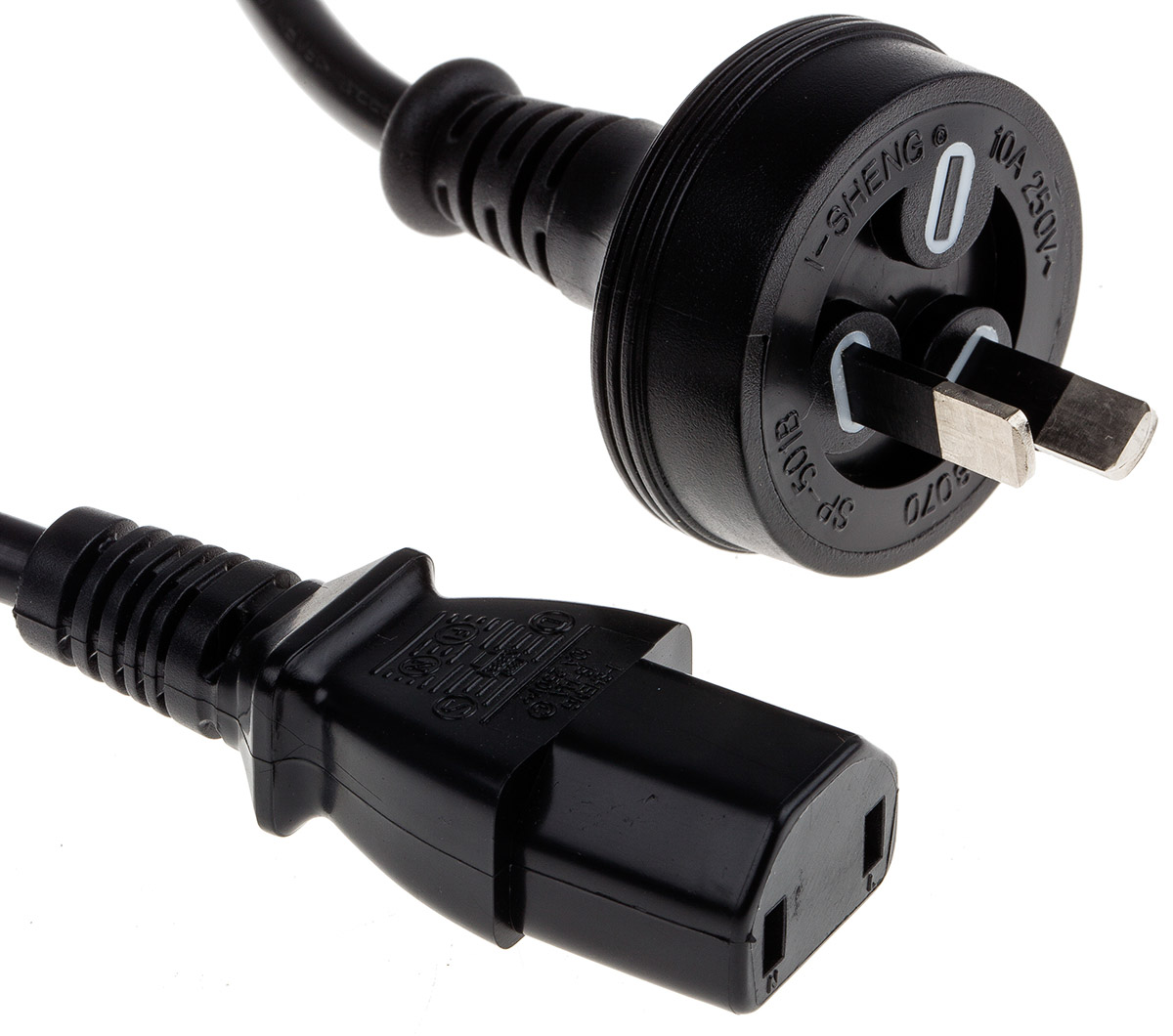 This is 2m power cord C17 to Australian Plug (AS/NZS 3112) 10 A 250 V manufactured by RS Pro. The manufacturer part number is 901-0750. The product has a current rating of 10 a. Moreover, the product has a nominal 250 v voltage rating. This connector 1 is a female. The sheath has an adorable black colour. Its accurate length is 2m. Whereas the outer sheath is manufactured from pvc material. While the Connector 2 is type i australian plug. Connector 2 is a male connector. Connector 1 is iec c17.