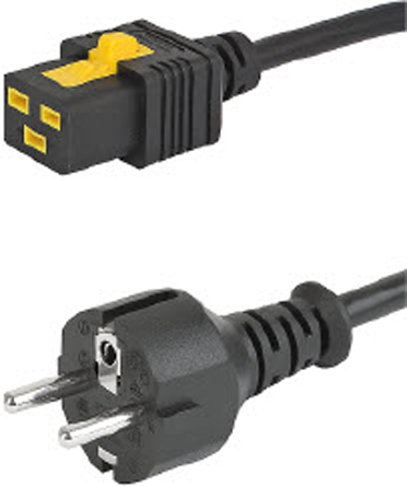 This is C19 Cable Mount power cord Socket Plug manufactured by Schurter. The manufacturer part number is 6051.2043. The product has a current rating of 16 a. Moreover, the product has a nominal 125 (csa) v ac, 125 (ul) v ac, 250 (iec) v ac voltage rating. This connector 1 is a female. The sheath has an adorable black colour. Its accurate length is 2m. While the Connector 2 is cee 7/7. Connector 2 is a male connector. Connector 1 is iec c19.