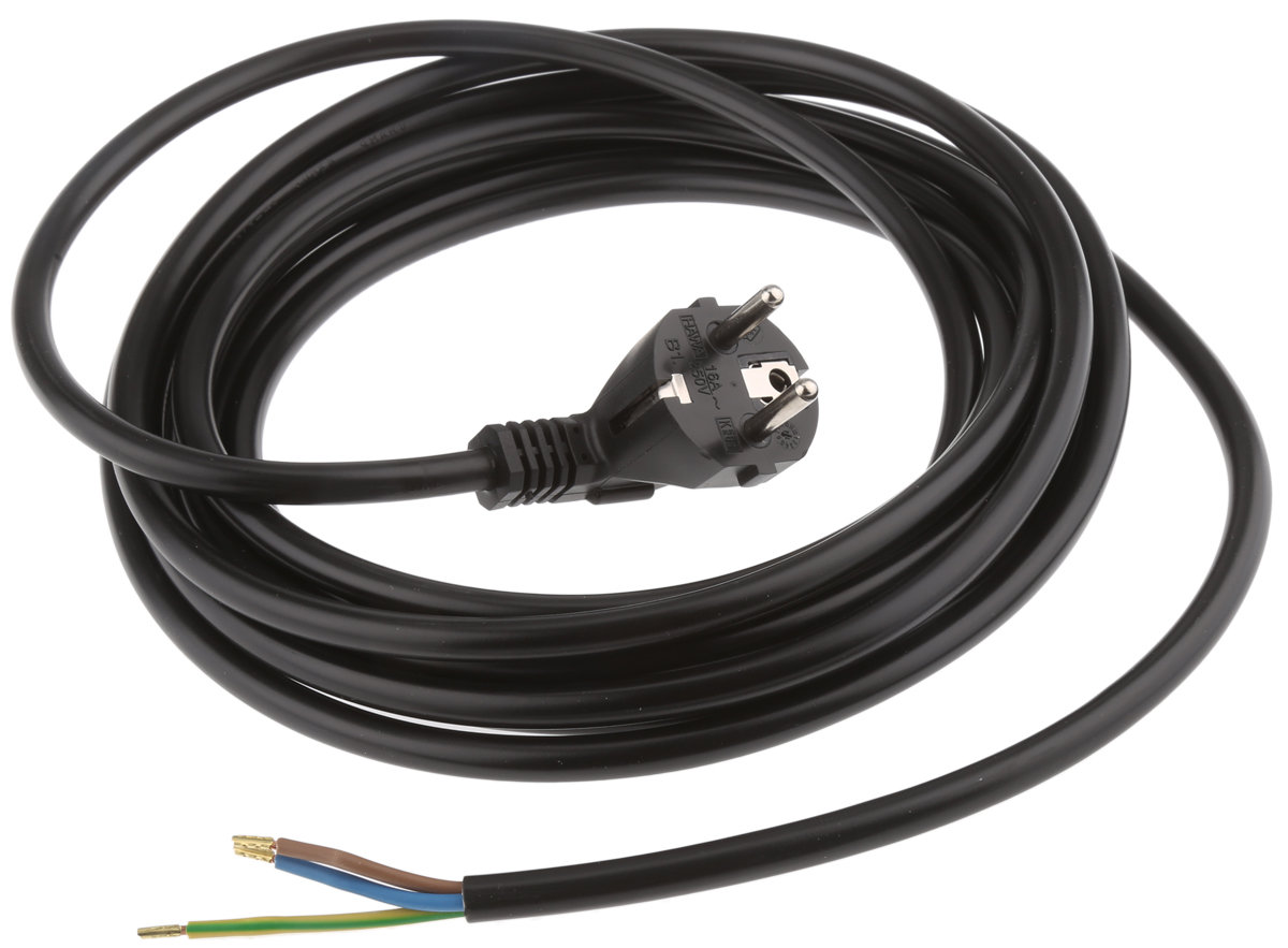 This is 5m Power Cable Unterminated to Schuko (CEE 7/3) 16 A 250 V manufactured by Kopp. The manufacturer part number is 147705011. The product has a current rating of 16 a. Moreover, the product has a nominal 250 v voltage rating. The sheath has an adorable black colour. Its accurate length is 5m. While the Connector 2 is type f german schuko plug. Connector 2 is a male connector. Connector 1 is unterminated.