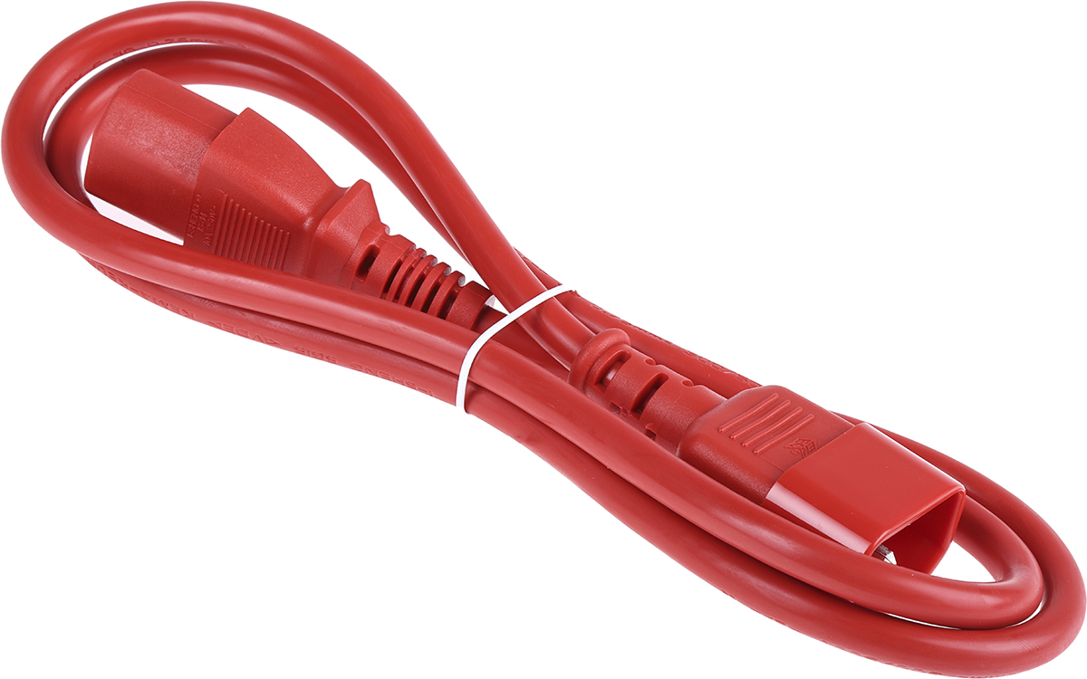 This is 1m Power Cable Assembly C13 to C14 (IEC) manufactured by RS Pro. The manufacturer part number is 137-3342. Connector 2 is a male connector. This connector 1 is a female. The sheath has an adorable red colour. Its accurate length is 1m. The product has 0.75 mm² cross section area. While the Connector 2 is iec c14. Connector 1 is iec c13.