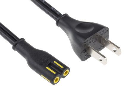 This is 1m power cord Self-extinguishing VNUS15S2 to VNC7S (VNC7S) 7 A 300 V ac manufactured by RS Pro. The manufacturer part number is 146-9122. The product has a self-extinguishing fire behaviour. The product has a current rating of 7 a. The product complies with all safety standards, such as csa c22.2 no 21-95, ul 498, ul 62, ul 817. Moreover, the product has a nominal 300 v voltage rating. While the connector B is vnus15s2. The connector A is iec c7 connector. The sheath has an adorable black colour. Its accurate length is 1m. While connector B has a male gender. The product has 2 x 0.824 mm² cross section area. Whereas the outer sheath is manufactured from pvc material. Connector A is a female allowing user-desired applications.