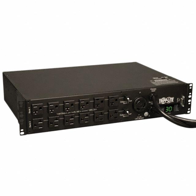 This is manufactured by Tripp Lite. The manufacturer part number is PDUMH30AT. It is assigned with possible HTSUS value of 8537.10.9170. The product is rohs3 compliant. The product also features robust steel housing material. It is approved by nom, ul. The possible product's input voltage is 120v. It comes in pdu (power distribution unit) configuration. The given maximum current is 30a. AC output connector is nema 5-20r (24), l5-30r. The number of AC outlet equals 25 . It is shipped in bulk package . The product is utilised in various regions, including north america. Its typical moisture sensitivity level is not applicable. The cord is 10' (3.05m) long. It has a long 2 weeks standard lead time. The splendid features of the product include load meter. The product is available in rack, horizontal configuration. Connector AC input - nema l5-30p (2). The product is designated with the ear99 code number.