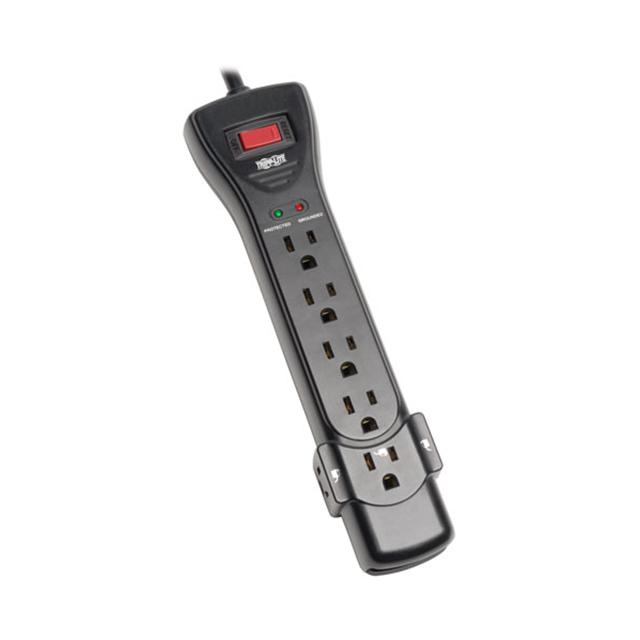 This is manufactured by Tripp Lite. The manufacturer part number is SUPER7BTAA. It is assigned with possible HTSUS value of 8504.40.7018. The product is rohs non-compliant. The product also features robust plastic housing material. It is approved by csa, tuv, ul. The possible product's input voltage is 120v. It comes in outlet strip, surge protector configuration. AC output connector is nema 5-15r. The number of AC outlet equals 7 . It is shipped in bulk package . The product is utilised in various regions, including north america. Its typical moisture sensitivity level is not applicable. The cord is 7' (2.13m) long. Overload Protected- circuit breaker(s). The product is available in wall mount configuration. The product protect it!®, is a highly preferred choice for users. It carries an energy of 2160j. Connector AC input - nema 5-15p. The product is designated with the ear99 code number.