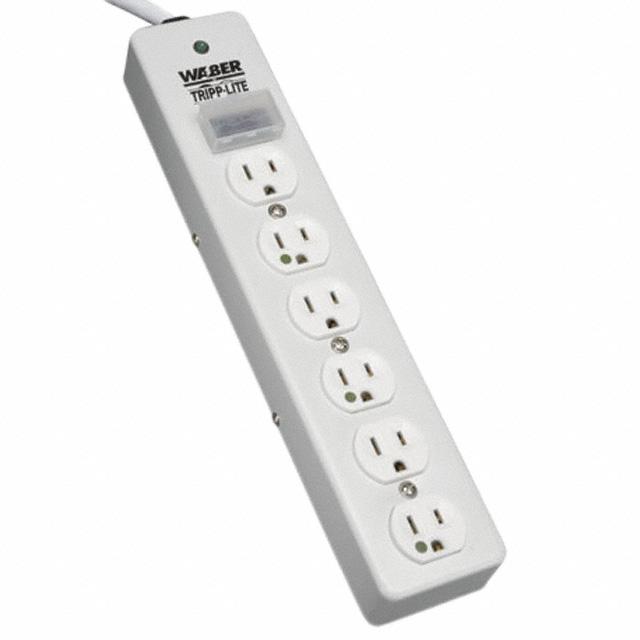 This is manufactured by Tripp Lite. The manufacturer part number is SPS610HGRA. It is assigned with possible HTSUS value of 8537.10.9170. The product is rohs3 compliant. The product also features robust metal housing material. It is approved by csa, cul, ul. The possible product's input voltage is 120v. It comes in outlet strip, surge protector configuration. The given maximum current is 15a. AC output connector is nema 5-15r. In addition, it is reach unaffected. The number of AC outlet equals 6 . It is shipped in bulk package . The product is utilised in various regions, including north america. Its typical moisture sensitivity level is not applicable. The cord is 10' (3.05m) long. Overload Protected- circuit breaker(s). It has a long 10 weeks standard lead time. The product is available in bench, floor, wall configuration. It carries an energy of 1050j. Connector AC input - nema 5-15p. The product is designated with the ear99 code number.
