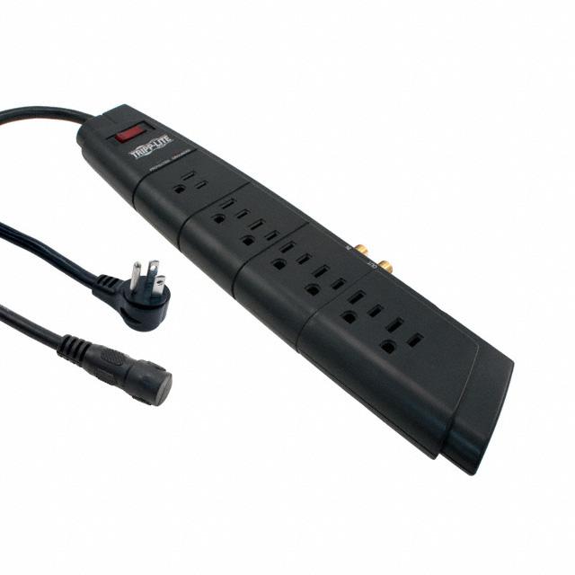 This is manufactured by Tripp Lite. The manufacturer part number is HT706TV. It is assigned with possible HTSUS value of 8536.30.8000. The product is rohs compliant. The product also features robust plastic housing material. It is approved by csa, cul, ul. The possible product's input voltage is 120v. The product is available in bench, floor, wall configuration. It is type f coax. It comes in outlet strip, surge protector configuration. The given maximum current is 15a. AC output connector is nema 5-15r. The number of AC outlet equals 7 . It is shipped in bulk package . The product is utilised in various regions, including north america. Its typical moisture sensitivity level is not applicable. The cord is 6' (1.83m) long. Overload Protected- circuit breaker(s). The typical product's weight is 1 lb (453.59 g). It carries an energy of 1500j. Connector AC input - nema 5-15p. The product is designated with the ear99 code number.