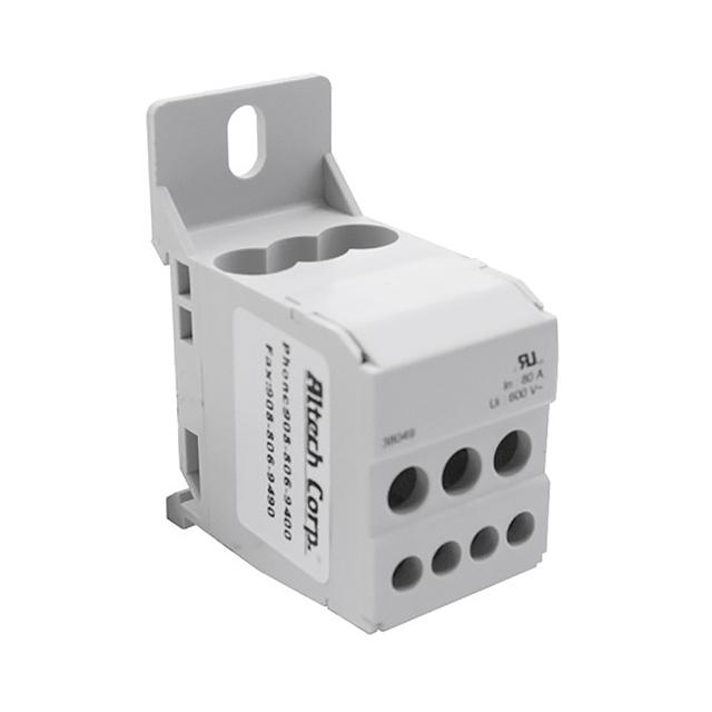 This is manufactured by Altech Corporation. The manufacturer part number is 38049. It is assigned with possible HTSUS value of 8536.90.4000. The product is rohs3 compliant. The product also features robust plastic housing material. It is approved by ce, ur. The possible product's input voltage is 600v. The product is available in din rail, panel configuration. It comes in pdu (power distribution unit) configuration. The given maximum current is 80a. AC output connector is screw terminals. In addition, it is reach unaffected. The altech corporation's product offers user-desired applications. The number of AC outlet equals 6 . The product is utilised in various regions, including international. Its typical moisture sensitivity level is not applicable. Overload Protected- none. It has a long 30 weeks standard lead time. In addition, bulk is the available packaging type of the product. Connector AC input - screw terminals. The product is designated with the ear99 code number.