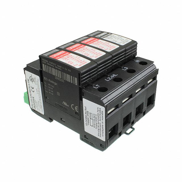 This is manufactured by Phoenix Contact. The manufacturer part number is 2910360. The product val, is a highly preferred choice for users. The voltage protection rating is 1200v (volts) . The product is available in din rail style. This surge protector device is highly durable product with a variety of applications. Its electrical phase configuration includes 3. It can withstand a maximum 65ka surge current . It is assigned with possible HTSUS value of 8536.30.8000. The product is rohs3 compliant. The product has a maximum of 264vac continuous operating voltage. The product has -40°c ~ 80°c operating temperature range. It is approved by cul, ul. It comes in type 1 configuration. The product is designed as a nice base + module. A protection level voltage of 2 kv. In addition, it is reach unaffected. The phoenix contact's product offers user-desired applications. Its typical moisture sensitivity level is not applicable. It has a long 6 weeks standard lead time. The product is available in din rail configuration. The product val-us, is a highly preferred choice for users. The voltage protection rating (VPR) of the product includes 1.5 kv. In addition, bulk is the available packaging type of the product. The nominal discharge current is 50 ka. It has equipped with 1 poles. The product is designated with the ear99 code number.