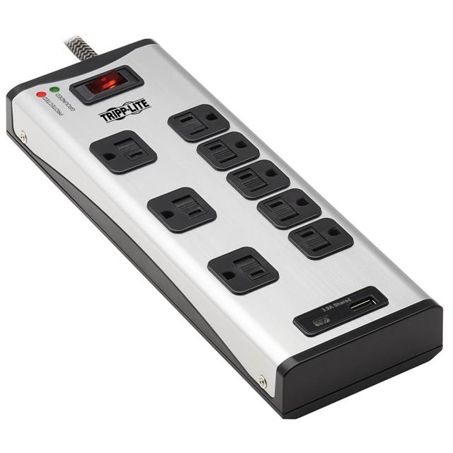 This is manufactured by Tripp Lite. The manufacturer part number is TLM88USBC. It is assigned with possible HTSUS value of 8537.10.9170. The product is rohs3 compliant. The product also features robust metal housing material. It is approved by csa, ul. The possible product's input voltage is 120v. The product is available in bench, floor, wall configuration. It comes in outlet strip, power strip, surge protector configuration. The given maximum current is 15a. AC output connector is nema 5-15r. The tripp lite's product offers user-desired applications. The number of AC outlet equals 8 . The product is utilised in various regions, including north america. Its typical moisture sensitivity level is not applicable. The cord is 8' (2.44m) long. Overload Protected- circuit breaker(s). It has a long 10 weeks standard lead time. The splendid features of the product include 2-usb charging ports. It carries an energy of 2100j. In addition, bulk is the available packaging type of the product. Connector AC input - nema 5-15p. The product is designated with the ear99 code number.