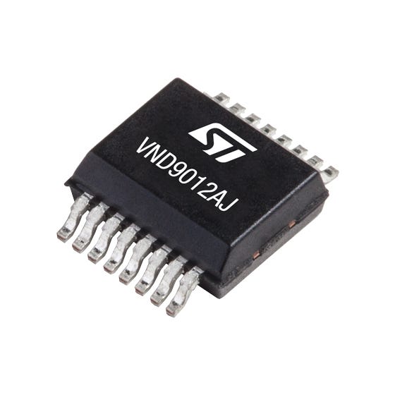 This is manufactured by STMicroelectronics. The manufacturer part number is VND9012AJTR. It carries 63 a output current. The product is a cmos logic type. The package is a sort of powersso-16. It has a/an high side type driver . It contains 16 pins. Features 4 → 28v supply voltage. It is assigned with possible HTSUS value of 8542.39.0001. The product is rohs3 compliant. powersso-16 is the supplier device package value. The product has -40°c ~ 150°c (tj) operating temperature range. The maximum product's output current is 63a. It carries non-inverting input type. Moreover, the product comes in 16-powerlfsop (0.154", 3.90mm width). The supply voltage of a bespoke product includes 4v ~ 28v. In addition, it is reach unaffected. Furthermore, it has an-channel output. The ratio between its input and output is 1:1. Its typical moisture sensitivity level is 3 (168 hours). It has a long 26 weeks standard lead time. The product is available in surface mount configuration. The product vipower™, is a highly preferred choice for users. Fault protection features include current limiting (adjustable), open load detect, over temperature, reverse battery, uvlo. In addition, tape & reel (tr) is the available packaging type of the product. Moreover, it corresponds to vnd9012, a base product number of the product. The typical Rds On of the product is 12mohm. It boasts high side output configuration. The product is designated with the ear99 code number. Additionally, the product is supplied with 2 outputs. Quality product with a general purpose switch type.