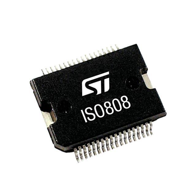 This is manufactured by STMicroelectronics. The manufacturer part number is ISO808TR. Additionally, the product is supplied with 8 outputs. Its power switch is of high side type . It has 36 v maximum operating supply voltage. Moreover, the product needs a maximum 1a operating current . The package is a sort of powerso-36. It has a high side power switch topology . It is supplied with 8 channels. It contains 36 pins. It is assigned with possible HTSUS value of 8542.39.0001. The product is rohs3 compliant. powerso-36, bottom pad is the supplier device package value. The product has -40°c ~ 125°c (tj) operating temperature range. The maximum product's output current is 700ma. It carries cmos input type. Moreover, the product comes in 36-powerbssop (0.433", 11.00mm width). The supply voltage of a bespoke product includes 2.75v ~ 5.5v. In addition, it is reach unaffected. Furthermore, it has an-channel output. The ratio between its input and output is 1:1. Its typical moisture sensitivity level is 3 (168 hours). A bespoke product is parallel interface. It has a long 25 weeks standard lead time. The splendid features of the product include auto restart, status flag, watchdog timer. The product is available in surface mount configuration. The given load voltage is 9.2v ~ 36v. Fault protection features include current limiting (fixed), over voltage, over temperature, reverse battery, short circuit, uvlo. In addition, tape & reel (tr) is the available packaging type of the product. The typical Rds On of the product is 125mohm. It boasts high side output configuration. The product is designated with the ear99 code number. Quality product with a relay, solenoid driver switch type.