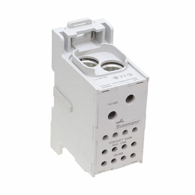 This is manufactured by Eaton - Bussmann Electrical Division. The manufacturer part number is PDBFS377. It also exhibits voltage rating of 600 v. The product is rohs compliant. It comes in power distribution block configuration. The load side has screw connection. It is assigned with possible HTSUS value of 8536.69.8000. In addition, it is reach unaffected. The line side wires features 300mcm (kcmil) - #4cu/al stud size. The eaton - bussmann electrical division's product offers user-desired applications. Its typical moisture sensitivity level is not applicable. The product's load side wire/stud size includes 4 - #6cu/al, #8 - #14cu, #8 - #12al. It has a long 4 weeks standard lead time. While there are total 2 line side connections per pole. While features screw connection at line side. Furthermore, per pole contains 12 load side connections. The product pdbfs, is a highly preferred choice for users. In addition, bulk is the available packaging type of the product. It has equipped with 1 poles. The product is designated with the ear99 code number.