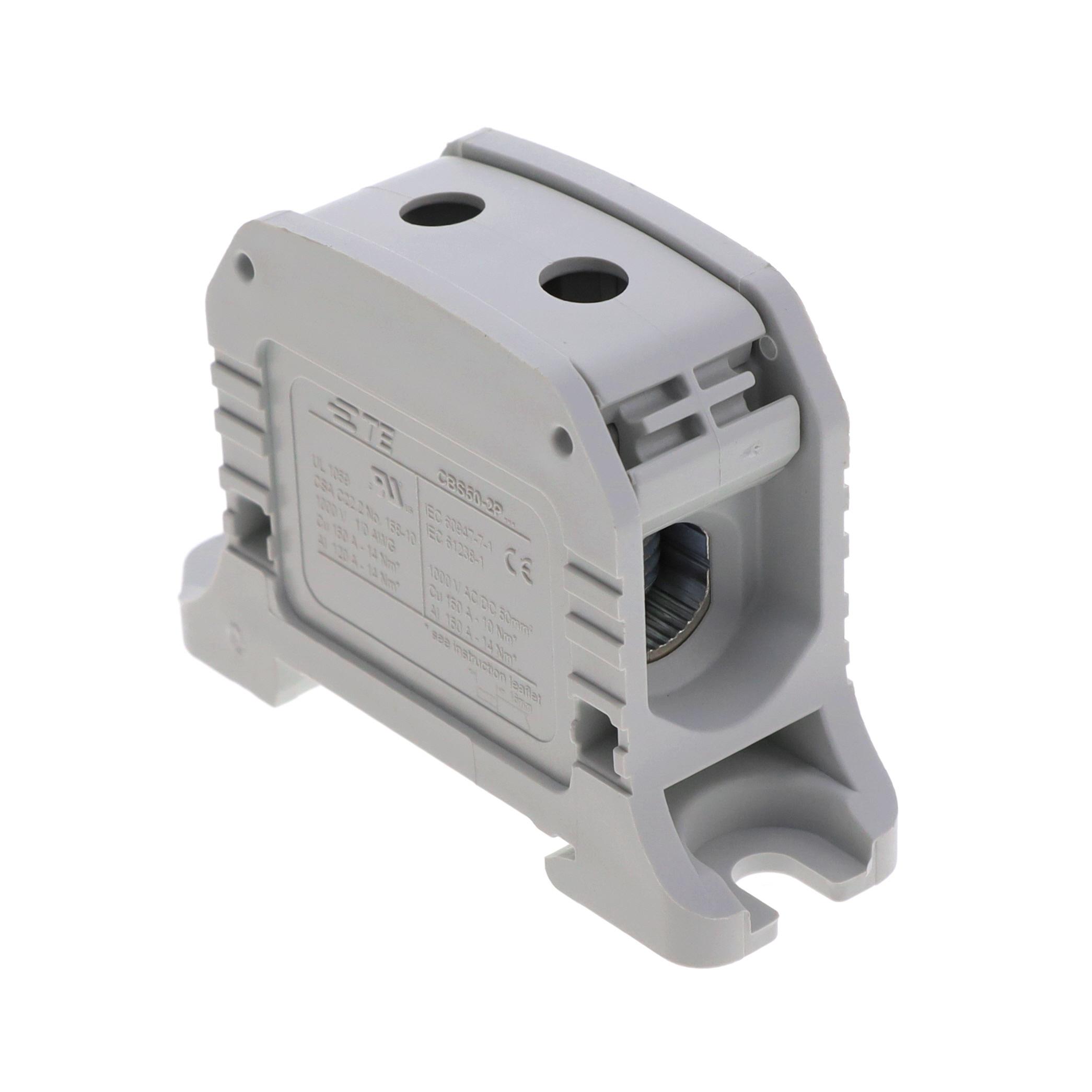 This is manufactured by TE Connectivity ENTRELEC. The manufacturer part number is CBS50-2P. It also exhibits voltage rating of 1000 v. It comes in power distribution block configuration. The load side has screw connection. It is assigned with possible HTSUS value of 8536.90.4000. The line side wires features 2-12 awg stud size. The te connectivity entrelec's product offers user-desired applications. Its typical moisture sensitivity level is 1 (unlimited). The product's load side wire/stud size includes 2-12 awg. It has a long 17 weeks standard lead time. While there are total 2 line side connections per pole. Additionally, the product's output is 150 a. While features screw connection at line side. Furthermore, per pole contains 2 load side connections. In addition, box is the available packaging type of the product. It has equipped with 1 poles. The product is designated with the ear99 code number.