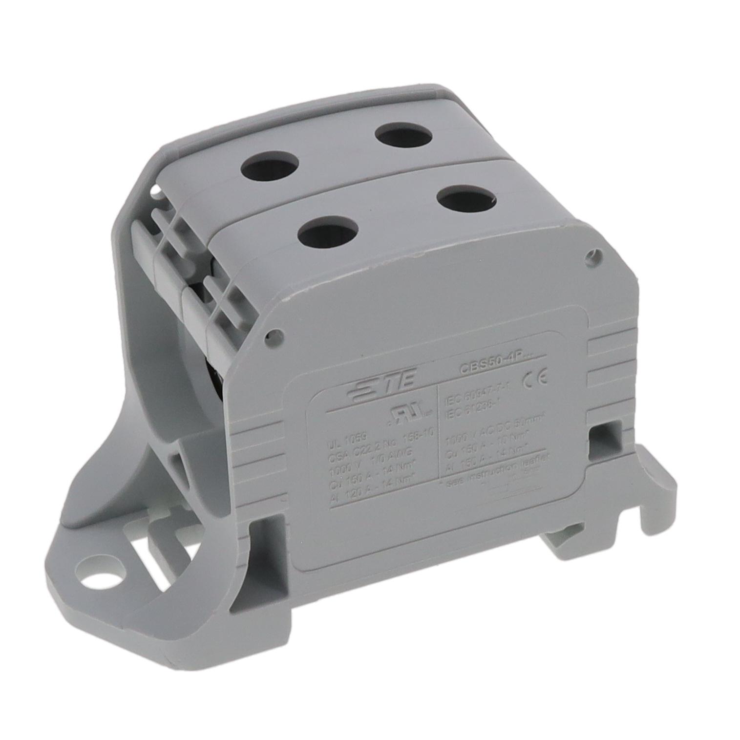 This is manufactured by TE Connectivity ENTRELEC. The manufacturer part number is CBS50-4P. It also exhibits voltage rating of 1000 v. It comes in power distribution block configuration. The load side has screw connection. It is assigned with possible HTSUS value of 8536.90.4000. The line side wires features 1-10 awg stud size. The te connectivity entrelec's product offers user-desired applications. Its typical moisture sensitivity level is 1 (unlimited). The product's load side wire/stud size includes 1-10 awg. It has a long 17 weeks standard lead time. While there are total 4 line side connections per pole. Additionally, the product's output is 150 a. While features screw connection at line side. Furthermore, per pole contains 4 load side connections. In addition, box is the available packaging type of the product. It has equipped with 1 poles. The product is designated with the ear99 code number.