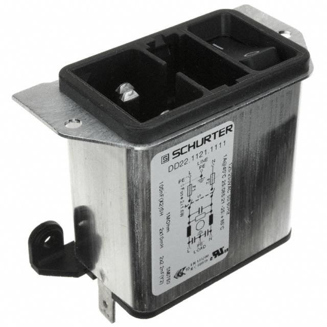 This is manufactured by Schurter Inc.. The manufacturer part number is DD22.1121.1111. Filter with 1a current rating. It is assigned with possible HTSUS value of 8536.30.8000. The product is rohs3 compliant. It has a panel thickness of 0.118" (3.00mm). It is approved by culus, enec. The filter is a filtered (emi, rfi) - commercial type with excellent features. It comes in iec 320-c14 connector style. The product carries possible position value of 3. Switch Attributes - switch on-off. The appliance's inlet current rating is 10a. The appliance has a voltage rating of 250vac its inlet. In addition, it is reach unaffected. It carries ul94 v-0 of material flammability rating. It is shipped in bulk package . receptacle, male blades - module Connector type offer robust functionality. Fuse Accommodation - [Accommodates a Fuse]. Its typical moisture sensitivity level is not applicable. The product features solder, quick connect - 0.250" (6.3mm) termination style. It has a long 33 weeks standard lead time. It is IP rated with ip40. The product is available in panel mount, flange; through hole, right angle configuration. The product dd22, is a highly preferred choice for users. Supplied with a drawer sold separate. Moreover, it corresponds to dd22.1121, a base product number of the product. The product is designated with the ear99 code number.