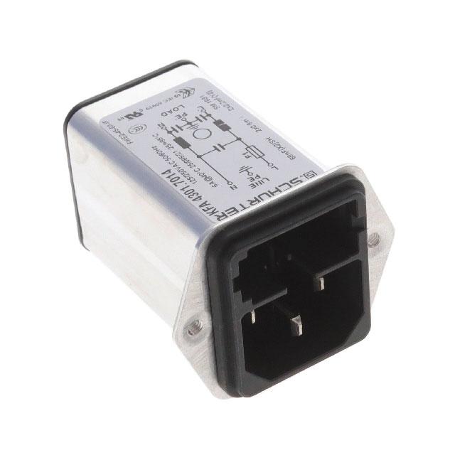 This is manufactured by Schurter Inc.. The manufacturer part number is 4301.7014. Filter with 6a current rating. It is assigned with possible HTSUS value of 8536.30.8000. The product is rohs3 compliant. It is approved by ccc, culus, enec. It also has a rectangular - 30.30mm x 34.30mm dimensional features. The filter is a filtered (emi, rfi) - commercial type with excellent features. It comes in iec 320-c14 connector style. The product carries possible position value of 3. The appliance's inlet current rating is 6a. The appliance has a voltage rating of 250vac its inlet. In addition, it is reach unaffected. It carries ul94 v-0 of material flammability rating. The schurter inc.'s product offers user-desired applications. receptacle, male blades - module Connector type offer robust functionality. Fuse Accommodation - [Accommodates a Fuse]. Its typical moisture sensitivity level is not applicable. The product features quick connect - 0.250" (6.3mm) termination style. It has a long 27 weeks standard lead time. It is IP rated with ip40. The product is available in panel mount, flange configuration. The product kfa, is a highly preferred choice for users. In addition, bulk is the available packaging type of the product. Supplied with a drawer sold separate. The product is designated with the ear99 code number.