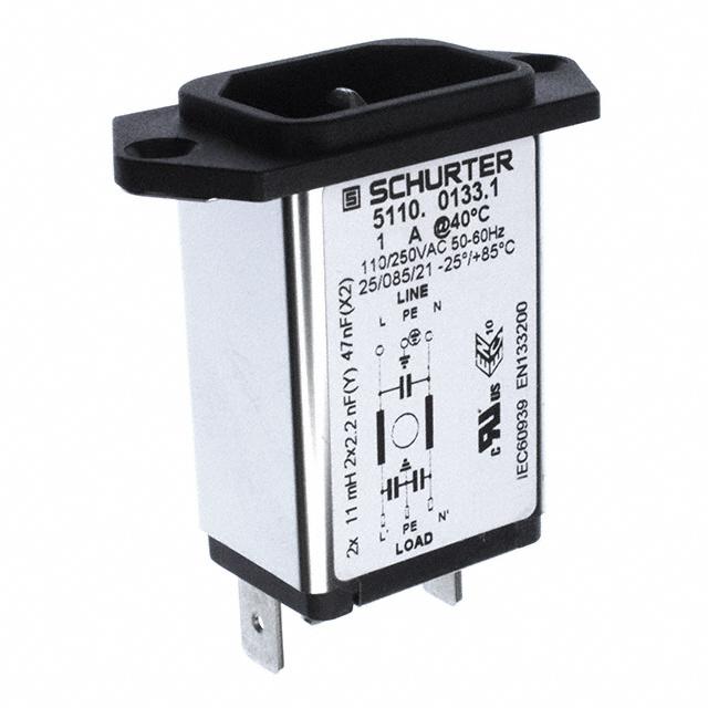 This is manufactured by Schurter Inc.. The manufacturer part number is 5110.0133.1. Filter with 1a current rating. It is assigned with possible HTSUS value of 8536.30.8000. The product is rohs3 compliant. It is approved by ccc, culus, enec. It also has a rectangular - 29.00mm x 21.00mm dimensional features. The filter is a filtered (emi, rfi) - commercial type with excellent features. It comes in iec 320-c14 connector style. The product carries possible position value of 3. The appliance's inlet current rating is 1a. The appliance has a voltage rating of 250vac its inlet. In addition, it is reach unaffected. It carries ul94 v-0 of material flammability rating. The schurter inc.'s product offers user-desired applications. receptacle, male blades Connector type offer robust functionality. Fuse Accommodation - [Accommodates a Fuse]. Its typical moisture sensitivity level is not applicable. The product features quick connect - 0.250" (6.3mm) termination style. It has a long 27 weeks standard lead time. It is IP rated with ip40. The product is available in panel mount, flange configuration. The product 5110, is a highly preferred choice for users. In addition, bulk is the available packaging type of the product. Moreover, it corresponds to 5110.0133, a base product number of the product. The product is designated with the ear99 code number.