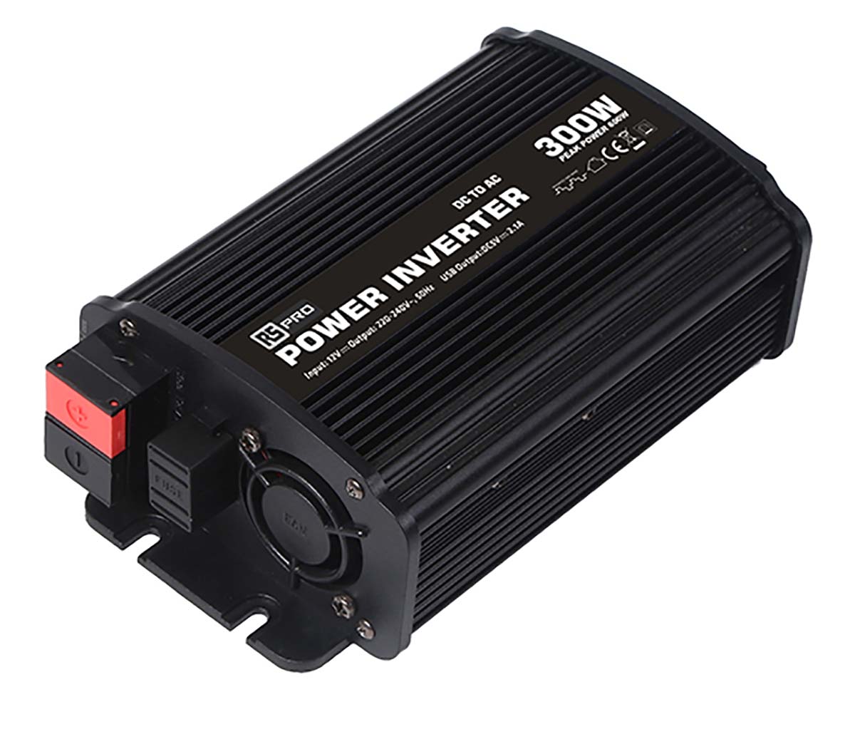 This is 300W Fixed Installation DC-AC Power Inverter 12V dc / 230V ac manufactured by RS Pro. The manufacturer part number is 816-0024. The product has +40°c maximum temperature. The typical product's weight is 630g. It has a standard universal type output connection . It has a standard 50/60hz output frequency range . While its minimum temperature is 0°c. Its accurate length is 195mm. It offers a continuous 300w output power . Furthermore, the product is 102mm wide. The product comes in 55.5mm depth. Its input voltage is 12v dc. It has modified sine wave output power waveform . Features a 230v ac output voltage. It provides robust protection features, such as over temperature protection, over voltage protection, overload protection, reverse polarity protection, short circuit protection. The product also provides special features, such as compact, east to operate, led indicators, lightweight. It has about 600w intermittent output power .