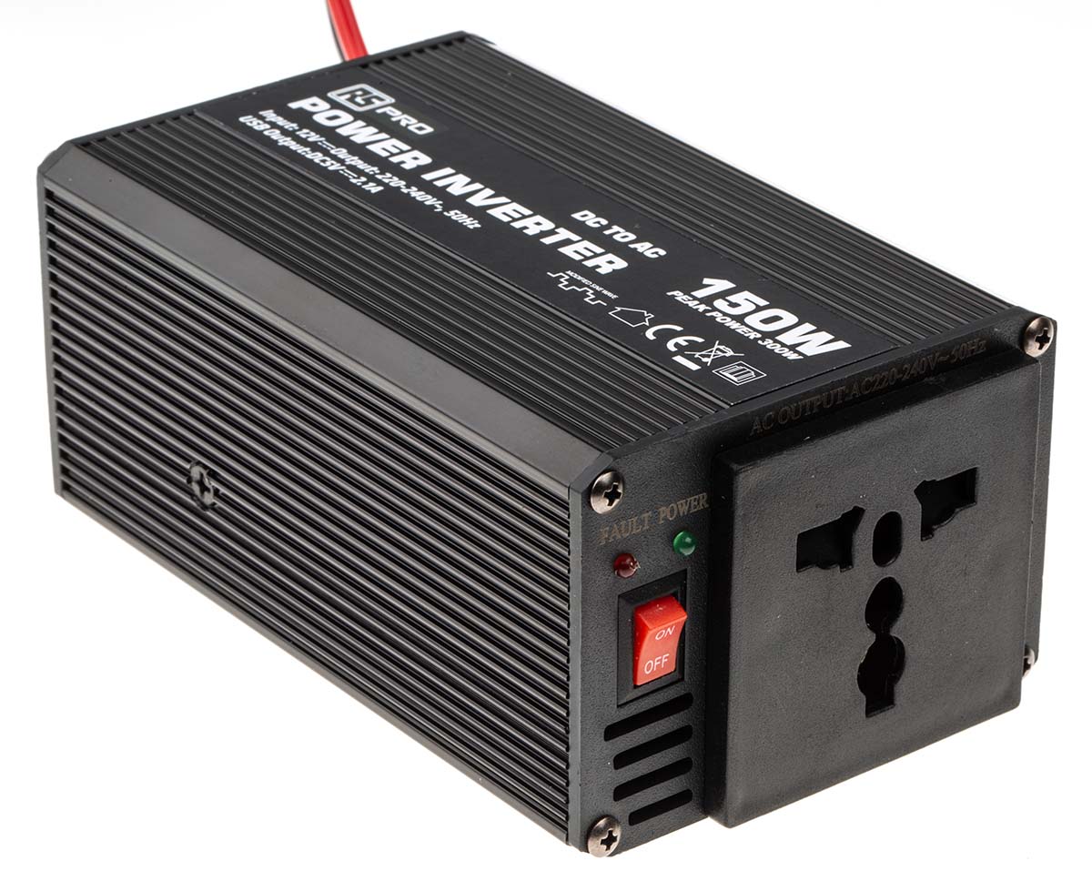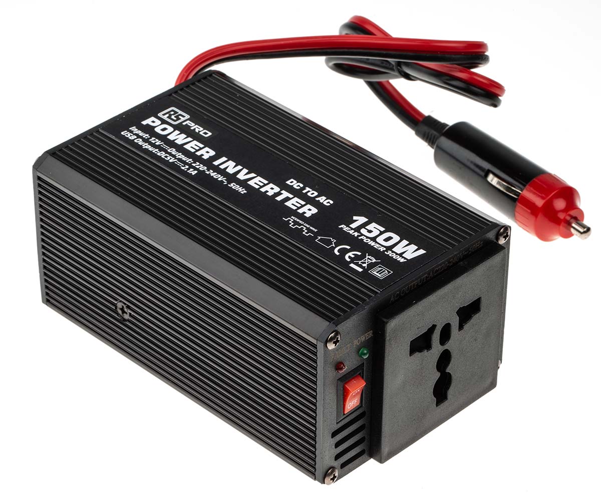 This is 150W DC-AC Car Power Inverter 12V dc / 230V ac manufactured by RS Pro. The manufacturer part number is 816-0015. The product has +40°c maximum temperature. The typical product's weight is 470g. It has a standard universal type output connection . It has a standard 50/60hz output frequency range . While its minimum temperature is 0°c. Its accurate length is 145mm. It offers a continuous 150w output power . Furthermore, the product is 76mm wide. The product comes in 54mm depth. Its input voltage is 12v dc. It has modified sine wave output power waveform . Features a 230v ac output voltage. It provides robust protection features, such as over temperature protection, over voltage protection, overload protection, reverse polarity protection, short circuit protection. The product also provides special features, such as compact, east to operate, led indicators, lightweight. It has about 300w intermittent output power .