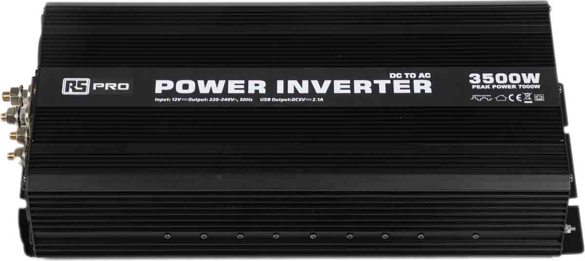 This is 3500W Fixed Installation DC-AC Power Inverter 12V dc / 230V ac manufactured by RS Pro. The manufacturer part number is 816-0071. The product has +40°c maximum temperature. The typical product's weight is 7.5kg. It has a standard universal type output connection . It has a standard 50/60hz output frequency range . While its minimum temperature is 0°c. Its accurate length is 420mm. It offers a continuous 3500w output power . Furthermore, the product is 230mm wide. The product comes in 108mm depth. Its input voltage is 12v dc. It has modified sine wave output power waveform . Features a 230v ac output voltage. It provides robust protection features, such as over temperature protection, over voltage protection, overload protection, reverse polarity protection, short circuit protection. The product also provides special features, such as compact, east to operate, led indicators, lightweight. It has about 7000w intermittent output power .