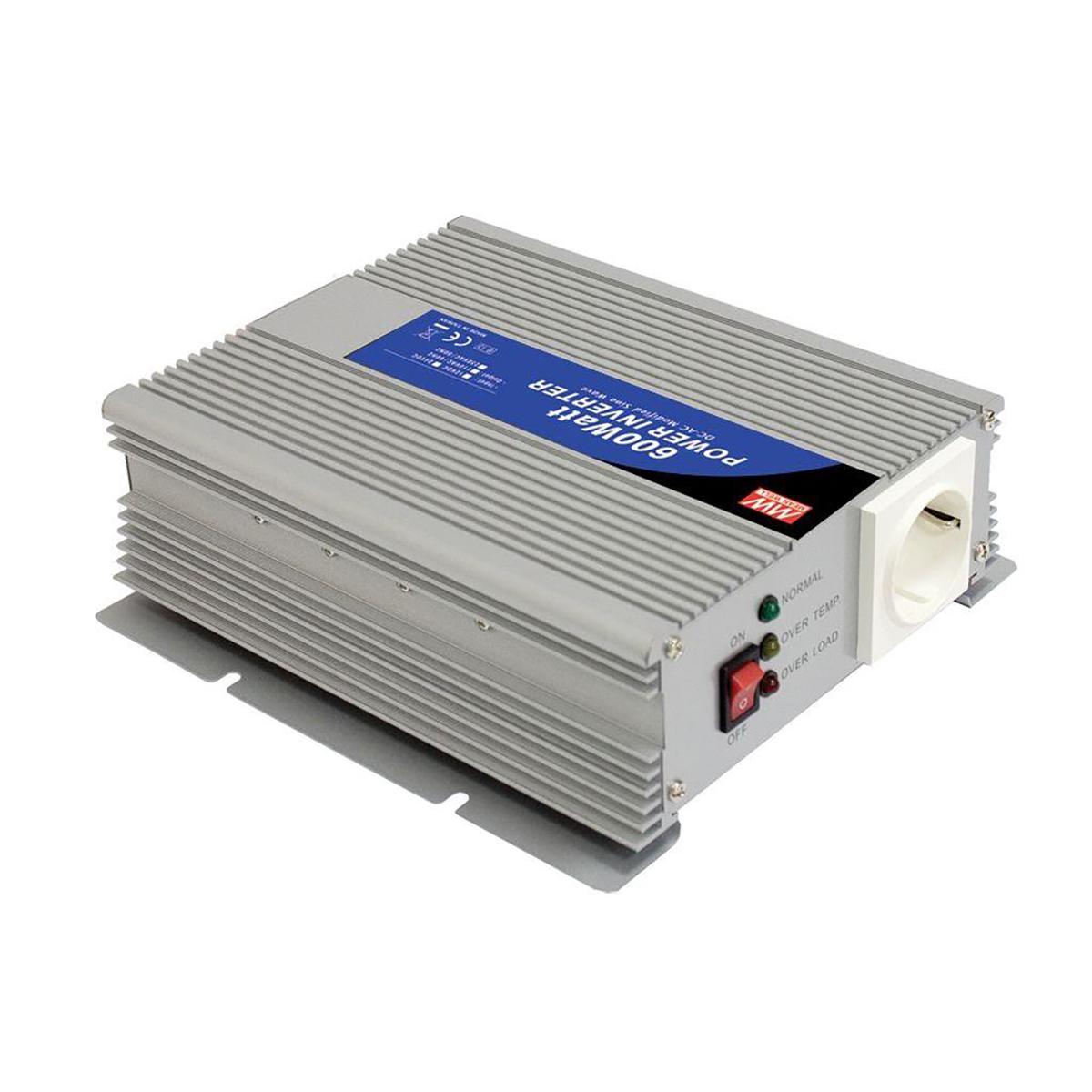 This is 600W Fixed Installation DC-AC Power Inverter 12V dc / 230V ac manufactured by Mean Well. The manufacturer part number is A301-600-F3. The product has +40°c maximum temperature. It carries 2.6a output current. The product is available in screw mount configuration. It is a highly efficient product with an 82% of high efficiency. It has a standard 50hz output frequency range . While its minimum temperature is 0°c. It has a standard schuko socket type output connection . Its accurate length is 210mm. It offers a continuous 600w output power . It has an inverter directionality of dc to ac . Furthermore, the product is 173mm wide. The product comes in 65mm depth. The MTBF values include 100kh. It has modified sine wave output power waveform . Features a 230v ac output voltage. It has 1 output connections . While its maximum input current includes 60a dc. Its input voltage is 12v dc.