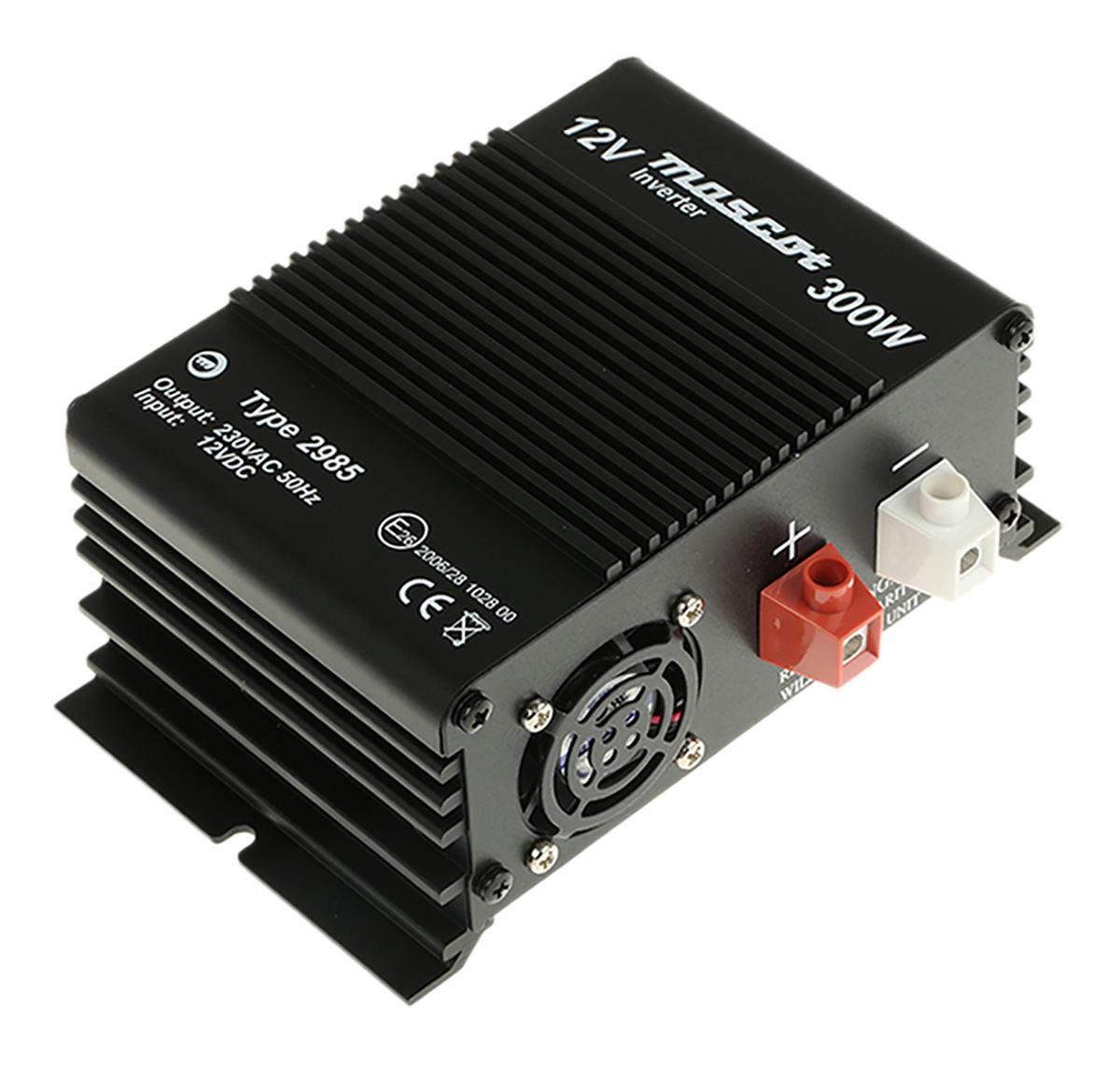 This is Quasi Sine Wave 300W Power Inverter 12V dc Input 230V ac Output manufactured by Mascot. The manufacturer part number is 2985120000. The typical product's weight is 780g. It is a highly efficient product with an 90% of high efficiency. It has a standard european plug type output connection . Its accurate length is 148.5mm. It offers a continuous 300w output power . Furthermore, the product is 127.5mm wide. The product comes in 66mm depth. The MTBF values include 53000h. It has quasi sine wave output power waveform . Features a 230v ac output voltage. It has about 500w intermittent output power . Its input voltage is 12v dc.