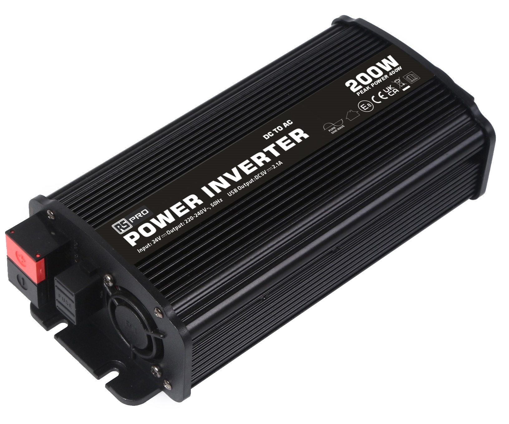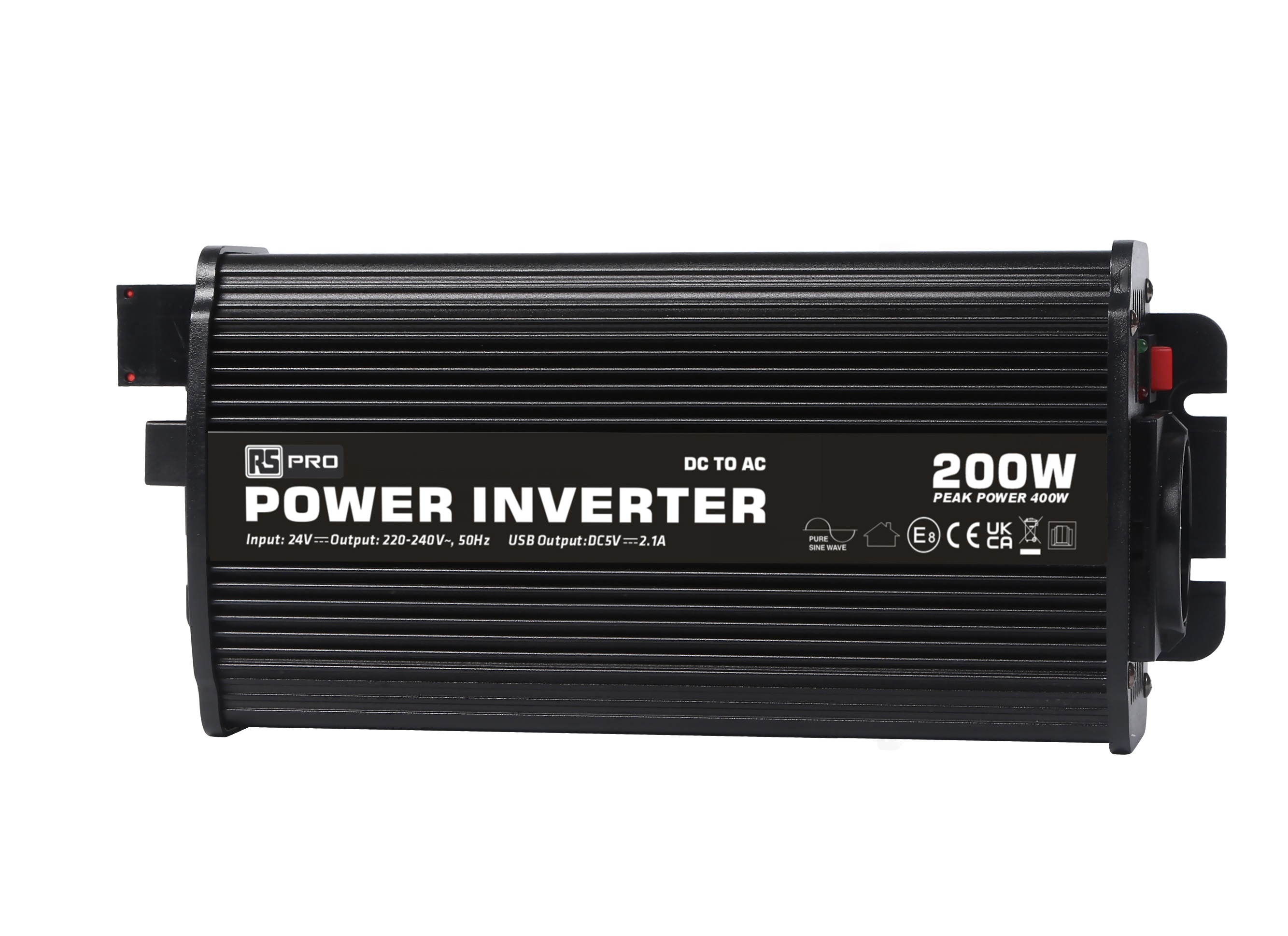 This is Pure Sine Wave 200W Fixed Installation DC-AC Power Inverter 24V dc Input 230V ac Output No manufactured by RS PRO. The manufacturer part number is 268-5143. The product has 50°c maximum temperature. With 1 output electrical phase . The lead is 530mm long. It has an inverter directionality of dc to ac . Furthermore, the product is 108mm wide. The MTBF values include 86852kh. It has about 400w intermittent output power . While its maximum input current includes 8.75a. It has a standard universal socket type output connection . The product is railway approved no . Its input voltage is 24v dc. It has pure sine wave output power waveform . It has an advance Cooling Method of loading controlled cooling fan While its minimum temperature is -20°c. It has 1 output connections . It has a standard 50hz output frequency range . Its accurate length is 226mm. The product is available in chassis mount configuration. It carries 0.87a output current. The product comes in 62mm depth. It offers a continuous 200w output power . The typical product's weight is 0.82kg. Features a 230v ac output voltage.