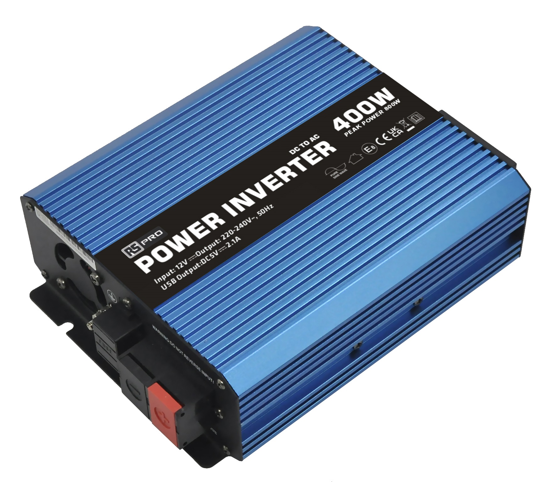 This is Pure Sine Wave 400W Fixed Installation DC-AC Power Inverter 12V dc Input 230V ac Output No manufactured by RS PRO. The manufacturer part number is 268-5144. The product has 50°c maximum temperature. With 1 output electrical phase . The lead is 530mm long. It has an inverter directionality of dc to ac . Furthermore, the product is 150mm wide. The MTBF values include 86852kh. It has about 800w intermittent output power . While its maximum input current includes 35a. It has a standard universal socket type output connection . The product is railway approved no . Its input voltage is 12v dc. It has pure sine wave output power waveform . It has an advance Cooling Method of loading controlled cooling fan While its minimum temperature is -20°c. It has 1 output connections . It has a standard 50hz output frequency range . Its accurate length is 205mm. The product is available in chassis mount configuration. It carries 1.74a output current. The product comes in 58mm depth. It offers a continuous 400w output power . The typical product's weight is 1.4kg. Features a 230v ac output voltage.
