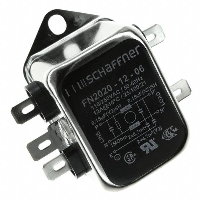 This is manufactured by Schaffner EMC Inc.. The manufacturer part number is FN2020-12-06. The product has 250v AC voltage rating. It is assigned with possible HTSUS value of 8548.00.0000. The product is rohs3 compliant. Moreover, it has quick connect terminal style. Features a 12 a current in A. The product has -25°c ~ 100°c operating temperature range. It is approved by csa, enec, ur. In addition, it is reach unaffected. The product is widely employed in general purpose. The product has a 700µh inductance value. The product is available in single stage configuration. The schaffner emc inc.'s product offers user-desired applications. Its typical moisture sensitivity level is not applicable. The filter is a single phase type with excellent features. It has a long 12 weeks standard lead time. The product is available in chassis mount configuration. The product fn 2020, is a highly preferred choice for users. In addition, tray is the available packaging type of the product. Features an operating frequency of dc ~ 400hz. Moreover, it corresponds to fn2020, a base product number of the product. The product is designated with the ear99 code number.