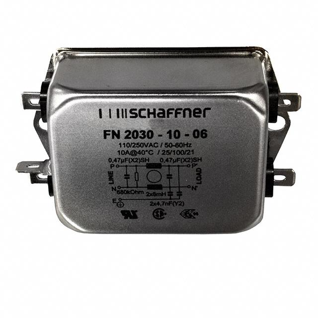 This is manufactured by Schaffner EMC Inc.. The manufacturer part number is FN2030-10-06. The product has 250v AC voltage rating. It is assigned with possible HTSUS value of 8548.00.0000. The product is rohs3 compliant. Moreover, it has quick connect terminal style. Features a 10 a current in A. The product has -25°c ~ 100°c operating temperature range. It is approved by csa, enec, ur. In addition, it is reach unaffected. The product is widely employed in general purpose. The product has a 8mh inductance value. The product is available in single stage configuration. The schaffner emc inc.'s product offers user-desired applications. Its typical moisture sensitivity level is not applicable. The filter is a single phase type with excellent features. It has a long 12 weeks standard lead time. The product is available in chassis mount configuration. The product fn 2030, is a highly preferred choice for users. In addition, tray is the available packaging type of the product. Features an operating frequency of dc ~ 400hz. Moreover, it corresponds to fn2030, a base product number of the product. The product is designated with the ear99 code number.