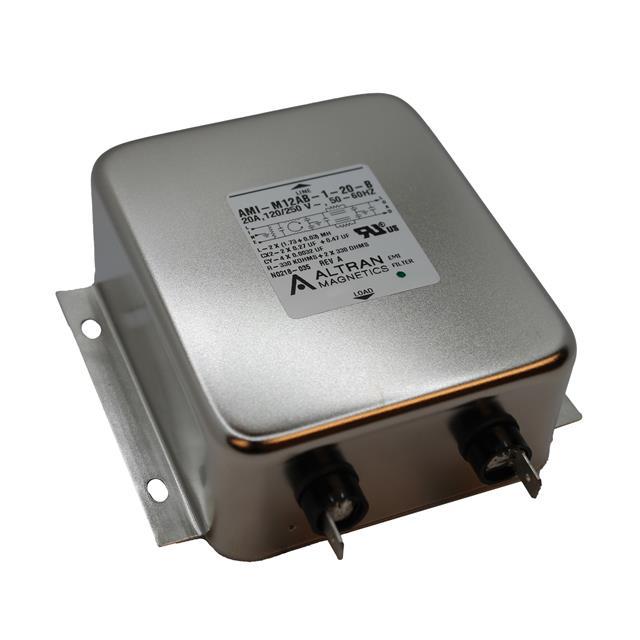 This is manufactured by Altran Magnetics, LLC. The manufacturer part number is AMI-M12AB-1-20-B. The product has 250v AC voltage rating. It is assigned with possible HTSUS value of 8548.00.0000. The product is rohs3 compliant. Moreover, it has quick connect terminal style. Features a 20 a current in A. The product has -10°c ~ 40°c operating temperature range. The product is widely employed in general purpose. The product has a 1.76mh inductance value. The product is available in two stage configuration. It is shipped in box package . Its typical moisture sensitivity level is 1 (unlimited). The filter is a single phase type with excellent features. It has a long 20 weeks standard lead time. The product is available in chassis mount configuration. The product ami-m12ab, is a highly preferred choice for users. Features an operating frequency of 50/60hz. Moreover, it corresponds to ami-m12a, a base product number of the product. The product is designated with the ear99 code number.
