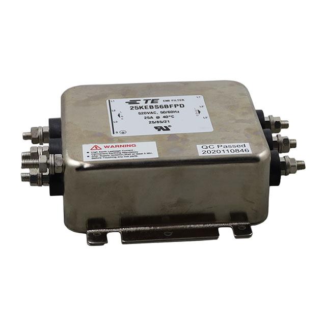 This is manufactured by TE Connectivity Corcom Filters. The manufacturer part number is 25KEBS6BFPD. The product has 520v AC voltage rating. It is assigned with possible HTSUS value of 8548.00.0000. The product is rohs3 compliant. Moreover, it has threaded post (m5) terminal style. Features a 20 a current in A. The product has -25°c ~ 85°c operating temperature range. It is approved by csa, ul. In addition, it is reach unaffected. The product is widely employed in general purpose. The product is available in single stage configuration. It is shipped in box package . Its typical moisture sensitivity level is not applicable. The filter is a three phase (delta) type with excellent features. It has a long 13 weeks standard lead time. The product is available in chassis mount configuration. The product keb, is a highly preferred choice for users. Features an operating frequency of 50/60hz. Moreover, it corresponds to 25kebs6b, a base product number of the product. The product is designated with the ear99 code number.