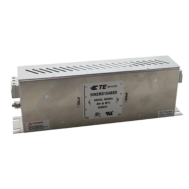 This is manufactured by TE Connectivity Corcom Filters. The manufacturer part number is 30KEMS10ABSD. The product has 440v AC voltage rating. It is assigned with possible HTSUS value of 8548.00.0000. The product is rohs3 compliant. Moreover, it has terminal block terminal style. Features a 30 a current in A. The product has -25°c ~ 85°c operating temperature range. It is approved by csa, ul. In addition, it is reach affected. The product is widely employed in general purpose. The product is available in single stage configuration. It is shipped in box package . Its typical moisture sensitivity level is not applicable. The filter is a three phase (delta) type with excellent features. It has a long 13 weeks standard lead time. The product is available in chassis mount configuration. The product kem-bs, is a highly preferred choice for users. Features an operating frequency of 50/60hz. Moreover, it corresponds to 30kems10, a base product number of the product. The product is designated with the ear99 code number.