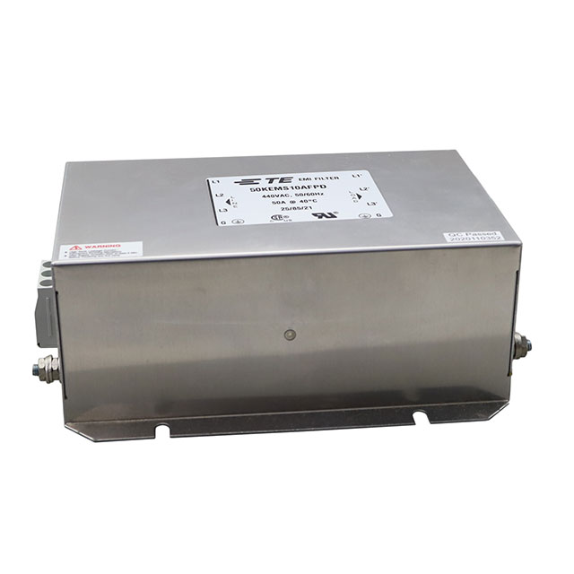 This is manufactured by TE Connectivity Corcom Filters. The manufacturer part number is 50KEMS10AFPD. The product has 440v AC voltage rating. It is assigned with possible HTSUS value of 8548.00.0000. The product is rohs3 compliant. Moreover, it has terminal block terminal style. Features a 50 a current in A. The product has -25°c ~ 85°c operating temperature range. It is approved by csa, ul. In addition, it is reach affected. The product is widely employed in converter. The product is available in single stage configuration. The te connectivity corcom filters's product offers user-desired applications. Its typical moisture sensitivity level is not applicable. The filter is a three phase (delta) type with excellent features. It has a long 10 weeks standard lead time. The product is available in chassis mount configuration. The product kem, is a highly preferred choice for users. In addition, box is the available packaging type of the product. Features an operating frequency of 50/60hz. Moreover, it corresponds to 50kems10, a base product number of the product. The product is designated with the ear99 code number.