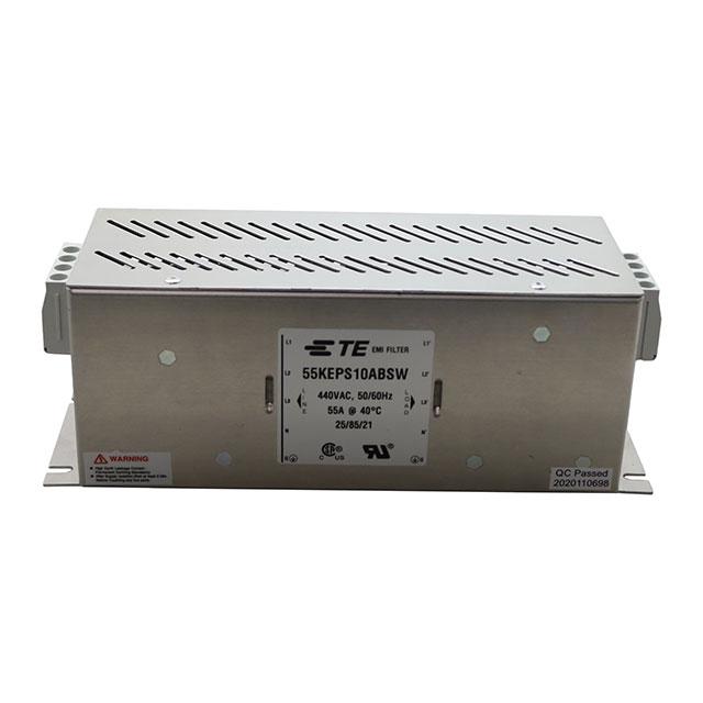 This is manufactured by TE Connectivity Corcom Filters. The manufacturer part number is 55KEPS10ABSW. The product has 440v AC voltage rating. It is assigned with possible HTSUS value of 8548.00.0000. The product is rohs3 compliant. Moreover, it has terminal block terminal style. Features a 55 a current in A. The product has -25°c ~ 85°c operating temperature range. It is approved by csa, ul. In addition, it is reach affected. The product is widely employed in general purpose. The product is available in single stage configuration. It is shipped in box package . Its typical moisture sensitivity level is not applicable. The filter is a three phase (wye) type with excellent features. It has a long 13 weeks standard lead time. The product is available in chassis mount configuration. The product kep-bs, is a highly preferred choice for users. Features an operating frequency of 50/60hz. Moreover, it corresponds to 55keps10, a base product number of the product. The product is designated with the ear99 code number.